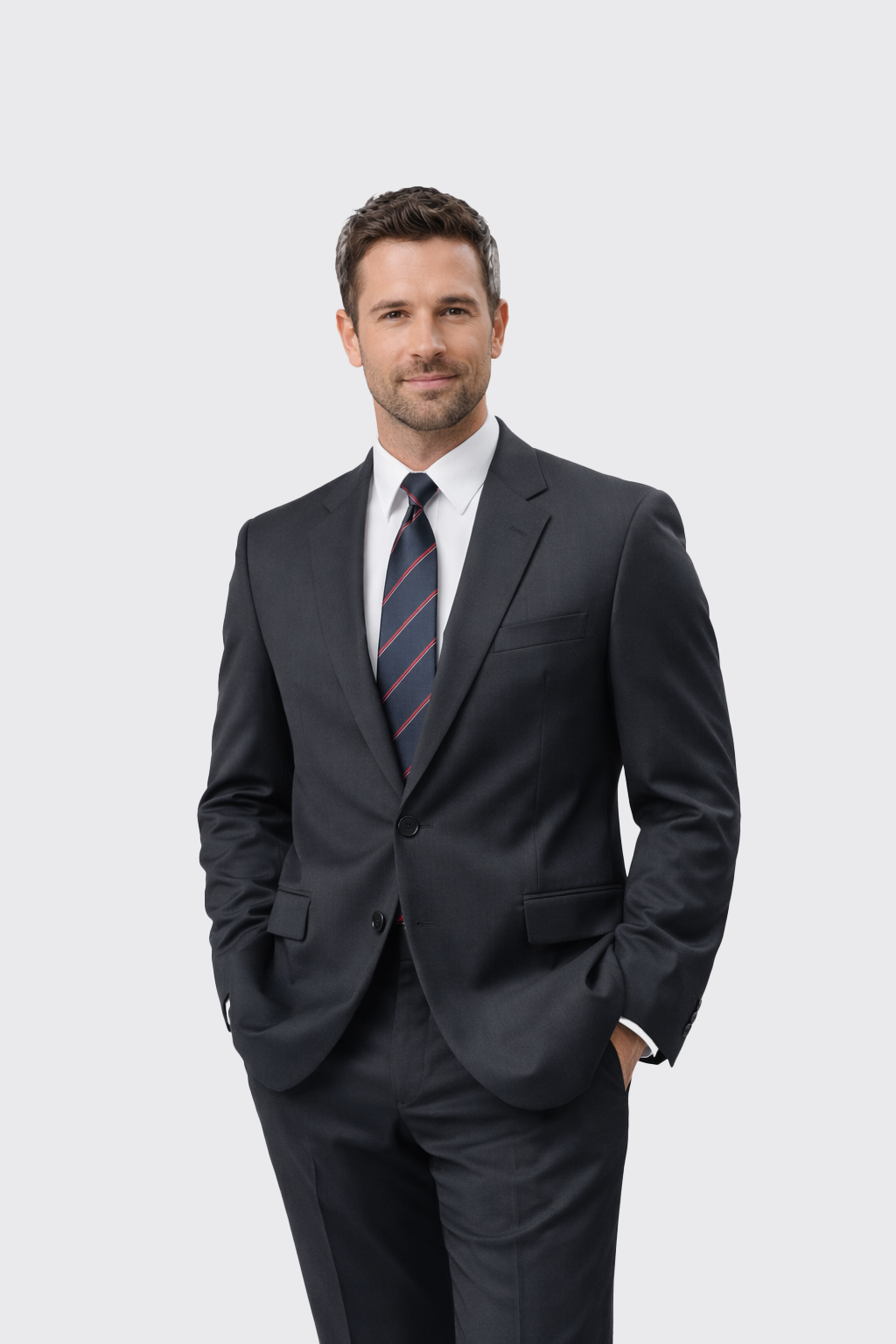 Klassiek colbert met 3-knoopsluiting en klepzakken. Meerdere binnenzakken en 1 borstzak. Hoge kwaliteit en voorzien van een laag vloeistof afstotende finish.