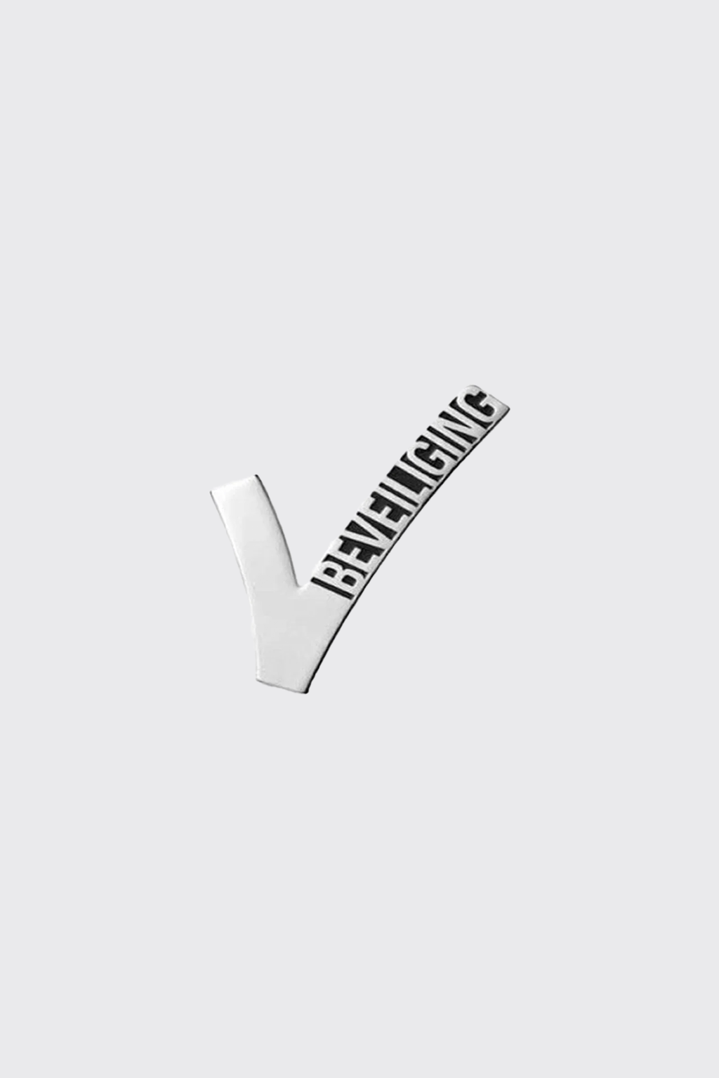Metalen V-embleem voorzien van snelsluiter (2-pin). Kan eenvoudig op kleding worden aangebracht. Formaat 47 x 55 mm.