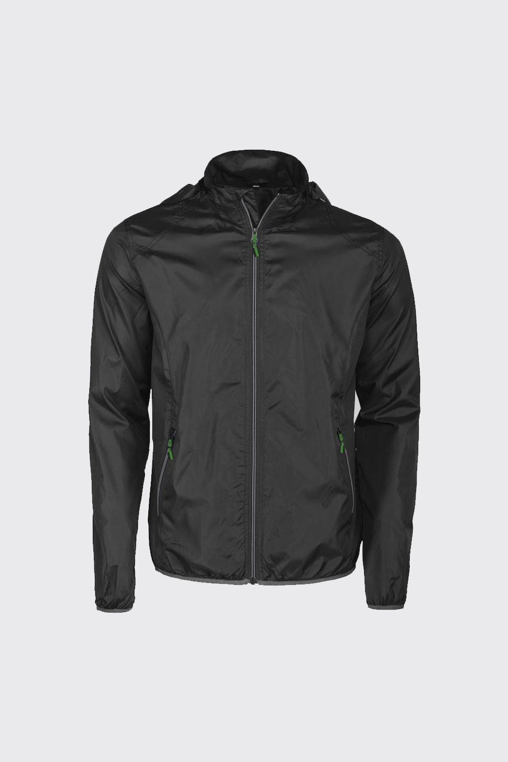 Lichte windbreaker met afneembare capuchon. De hele jas kan bijeen gepakt worden in één van de voorzakken en kan daardoor compact gedragen worden aan een riempje. Tweekleurige ritssluiting. Zippullers in contrasterende kleur. De zippullers kunnen indien gewenst vervangen worden door één van de andere beschikbare kleuren, passend bij de huisstijl en het logo van uw bedrijf.